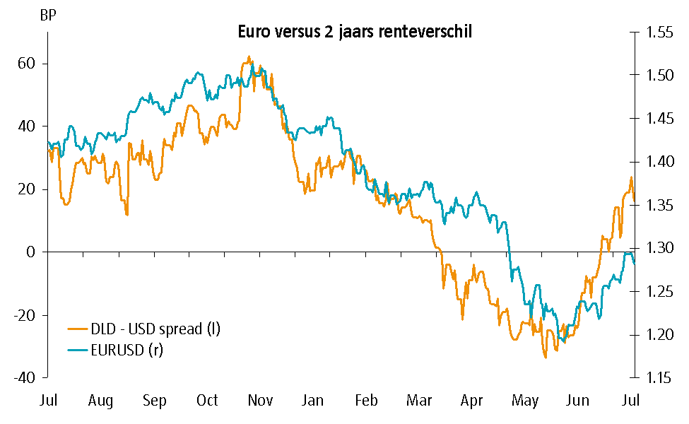 Voor Europa (en Nederland) mag ik hopen dat de Duitse opleving het begin van een nieuwe trend is. Liever nog zie ik dat de groei van de Duitse economie zich verbreedt en dat ook de binnenlandse bestedingen aantrekken. De ervaring van de afgelopen 20 jaar leert echter dat Duitsland juist op dit laatste gebied doorgaans teleurstelt. Of de euro dus blijvend zal weten te profiteren van deze trend valt wat mij betreft nog te bezien. Renteverschil werkt in het voordeel van de euro