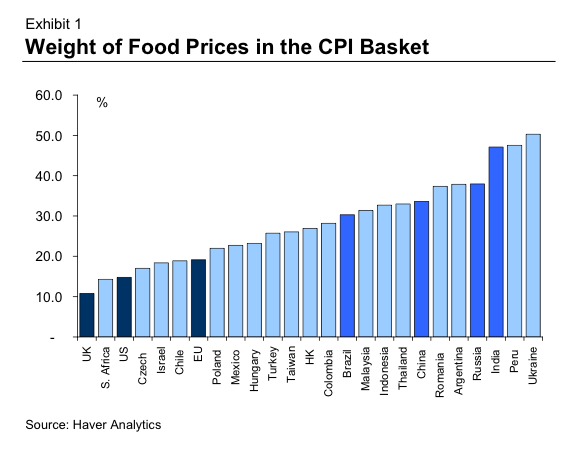 Handig overzicht van hoe belangrijk voedselprijzen zijn voor elk land