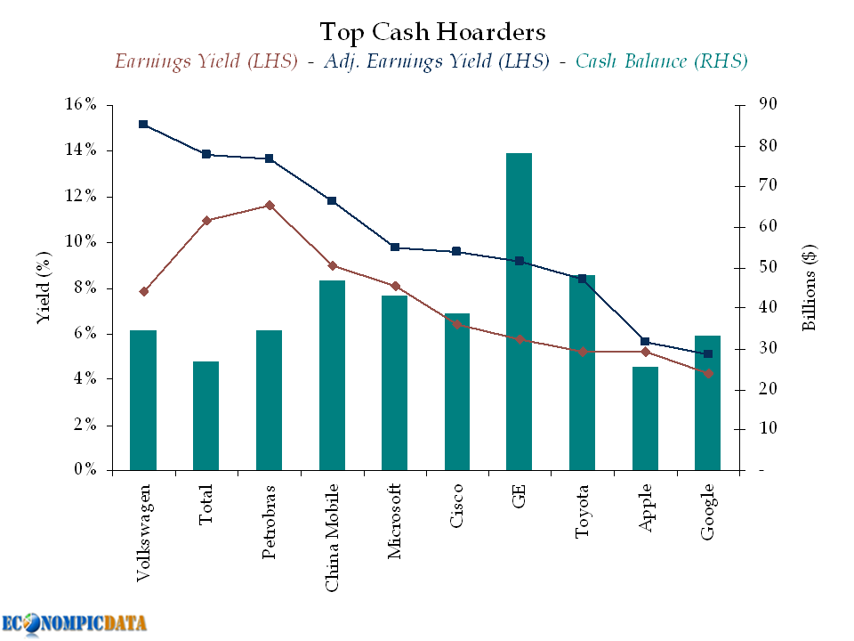 De top 11 bedrijven met grootste kaspositie wereldwijd