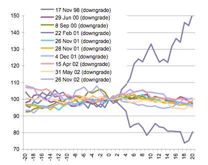 Welke impact had een verlaging van de kredietwaardigheid van Japan in het verleden?