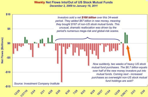 We zijn nog jaaaaren verwijderd van de echte bubbel in goud, volgens deze bijdrageMooie grafiek over de netto in- en uitstroom naar aandelen bij mutual funds