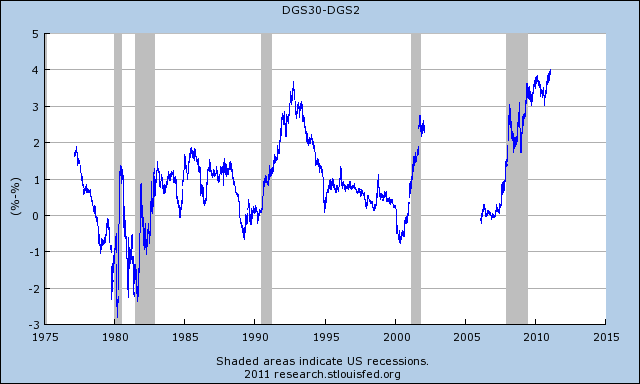 Amerikaanse yieldcurve breekt een nieuw record, qua steilheid. Vorige keer dat dat gebeurde begon de 10 jaars op te lopen…