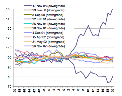 En dan hadden we nog een verlaging van de kredietwaardigheid in Japan, deze week. Big deal, volgens deze grafiek