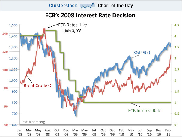 En onder het kopje suggestieve grafieken, hier is wat er de vorige keer gebeurde toen de ECB de rente verhoogde