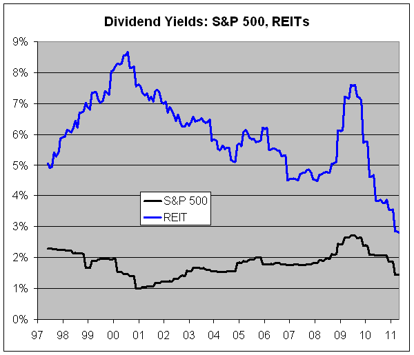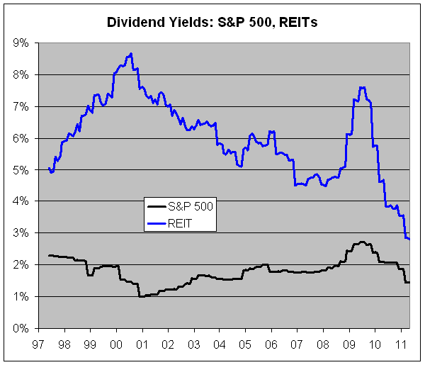 De meerwaarde van een vastgoedbelegging (hoge dividend yield) lijkt de laatste jaren aan wat verval onderhevig…