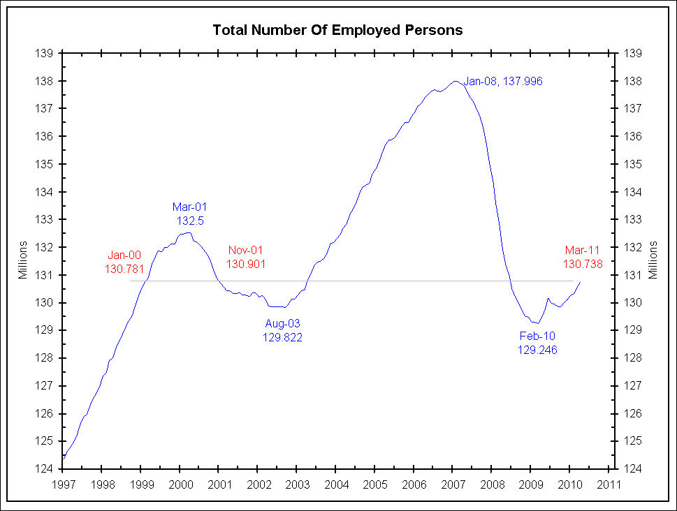 En deze gaat over de banenmarkt: ondanks een groeiende bevolking zijn er nu evenveel mensen aan het werk als in 1999