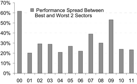 (bron: http://www.businessinsider.com/the-spread-between-best-and-worst-performing-markets-is-narrow-2011-6)