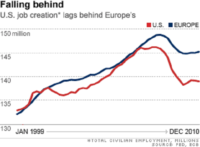 En deze grafiek laat -heel summier- de vergelijking Amerika Europa zien: