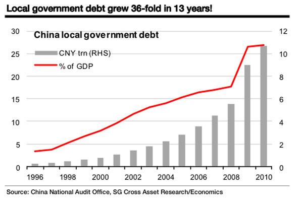 Eigenlijk nieuws van gisteren, maar nu met een historische grafiek: local government debt in China