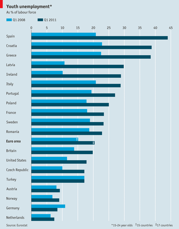 Toch redelijk schokkende grafiek over jeugdwerkloosheid in Europa