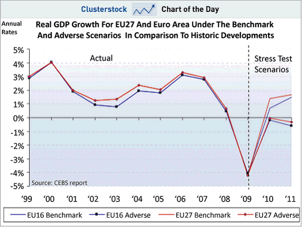 Wat ze in Amerika kunnen, moeten wij ook doen, zullen ze in Europa gedacht hebben. Alleen ging het in de regie van meet af aan mis. Ook hier werd een test afgenomen, maar maakte men in de eerste instantie de fout de resultaten slechts op hoofdlijnen bekend te maken. Geen uitsplitsing per bank dus, waarmee het Amerikaanse succes dus ook niet werd bereikt. Sterker nog, door het uitbreken van de onrust om Griekenland nam de spanning juist weer toe. Welke financiële instelling had nou welke exposure op welk land? Bij gebrek aan duidelijkheid, kwam de hele financiële sector onder druk te staan. Amerika voerde vervolgens de druk op om de resultaten van de tweede stress test wel publiek bekend te maken. Vooral Duitsland lag naar verluid dwars, maar uiteindelijk ging men ook daar akkoord om de individuele resultaten te publiceren. Op 26 juli vorig jaar werden de resultaten uiteindelijk gepubliceerd. Voor een overzicht van de commentaren op die dag verwijs ik naar de Best of the Web, waar ik een heuse Stress Test Special over het onderwerp maakte. Het oordeel was kort maar krachtig: een stress test waarbij slecht zeven van de 91 banken problemen hebben en waarbij slechts 3,5 miljard euro moet worden opgehaald, is geen stress test. Pikant detail was dat de Ierse banken –die niet lang daarna door de Ierse overheid genationaliseerd moesten worden- met vlag en wimpel door de test heen kwamen.