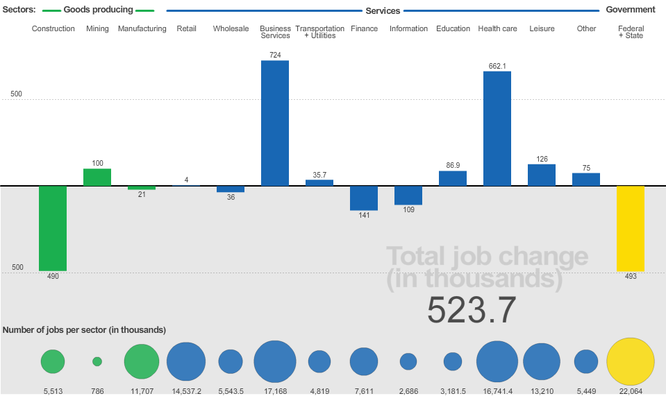 Mooie tijdlijn van hoe de banengroei in de VS zich ontwikkeld heeft