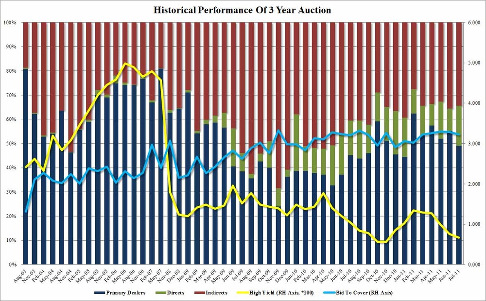 De veiling van de 3 jaars Amerikaanse staatsschuld ging netjes, ondanks het 'wegvallen' van QE2 ??