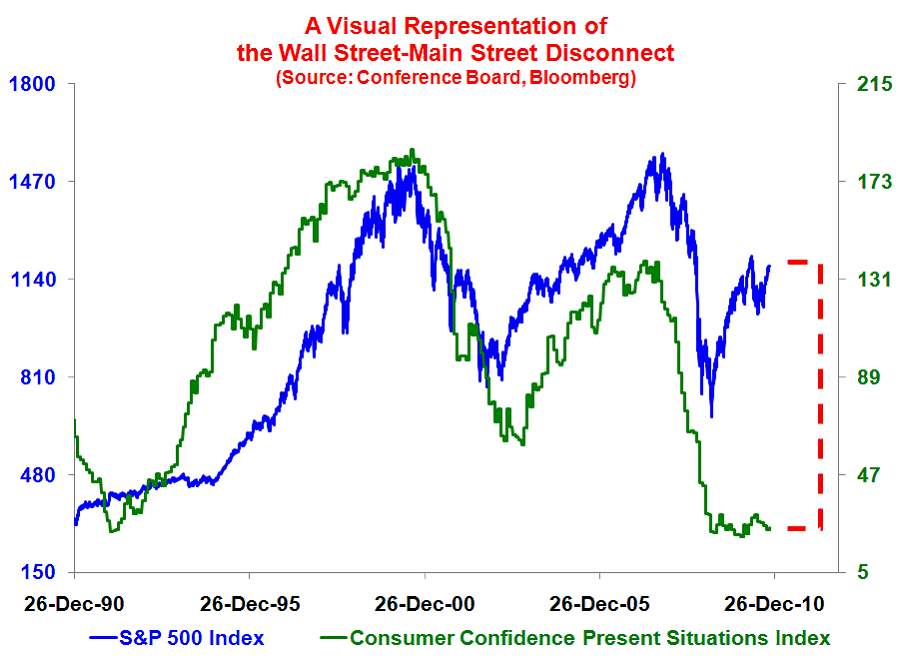 Niet alleen voor de beurs zie je die grafieken opduiken, ook voor economische macro-data. En dat ook niet alleen handelaren zich door deze mooie manier van presenteren laten verleiden blijkt wel uit deze grafiek, die ik van het blog van Nobel prijswinnaar Krugman heb geplukt (ook al is hij niet de originele bron).