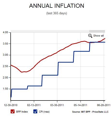 Interessant: een indicatie van de Billion Prices Project dat de Amerikaanse inflatie wellicht toch verder op gaat lopen