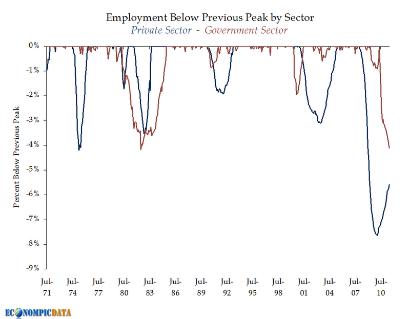 En ook deze is van vorige week: mooi uitgevoerde 3D grafiek van hoe de recessie van 2010 zich vergelijkt met vorige recessies