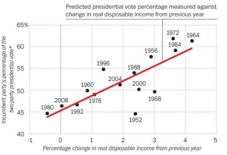 Een aardig stuk over welke economische variabele bepaalt of een President herkozen wordt of niet