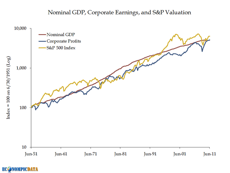 Simpele grafiek, maar aardig om te zien: BBP, winst en S&P