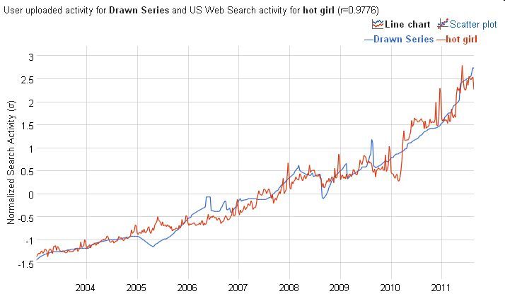 En dan dit ijzersterke, wat zeg ik, gouden verband tussen de prijs van goud en de zoekterm 'hot girl' op google. Meer leuke voorbeelden bij alphaville