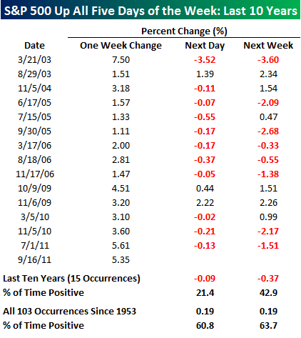 Zinloze statistieken die toch leuk zijn: wat er in het verleden gebeurde als de S&P500 een week lang omhoog ging
