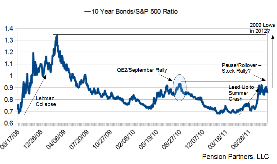 "What does the ratio between bonds/stock suggest?" Goeie vraag en op basis van deze grafiek zou ik het antwoord niet durven geven