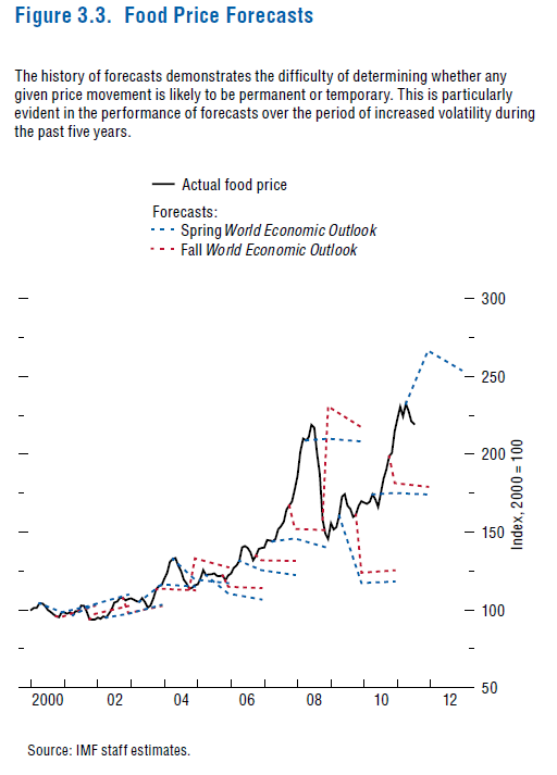 Deze is uiteraard ook mooi: hoe goed zijn de voorspelling voor voedselprijzen van het IMF geweest…
