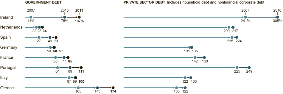 Aardige grafiek, maar ik kan deze percentages eigenlijk absoluut niet plaatsen. Nederlandse overheid een schuld van 28% van het BBP?