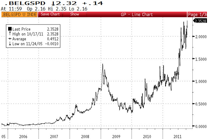 En ik kreeg het gevoel dat dit gisteren voornamelijk genegeerd werd door de markten: Belgische spread naar een nieuw euro-high…