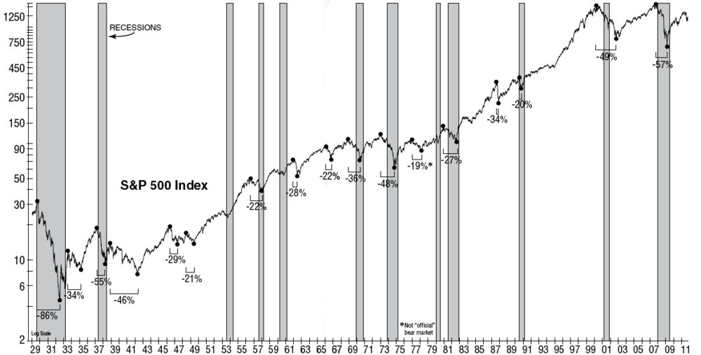 Ziet er mooi uit, dit overzicht van de S&P en de recessies