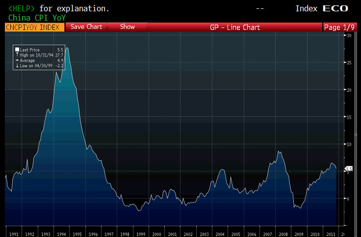 Chinese inflatie komt inderdaad een stuk lager uit (5.5%) dankzij lagere voedselinflatie (11.9%)