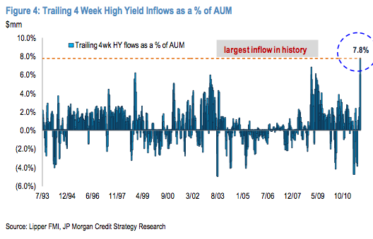 In maart, vlak na de Japanse aardbeving, stroomde er ook al zoveel kapitaal naar Japan: nu is high yield opeens het snoepje van de maand