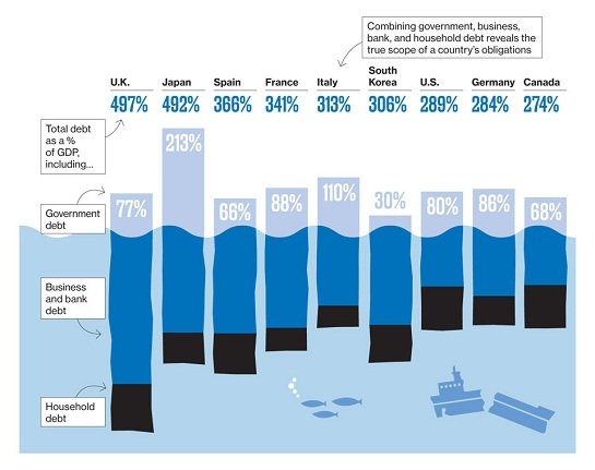 En ook deze is aardig, hoewel het wel wat misleidend is: hoe meer overheidsschuld, hoe hoger je drijft!