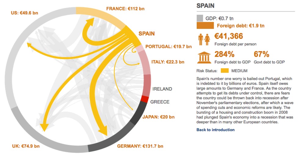 Morgen allen. De mooie infographic van de BBC (van vorige week): klik en je ziet hoeveel schuld elk land heeft uitstaan bij buitenlandse banken. Alleen het UK klopt niet, lijkt het…