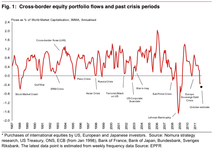 Mooie lange termijn grafiek over grensoverschrijdende aandelen transacties, van Nomura
