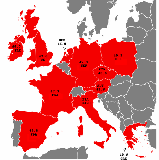 (bron: http://www.zerohedge.com/news/do-you-believe-ism-miracles-goldman-doesnt) En dit is het beeld voor de individuele landen voor Europa …