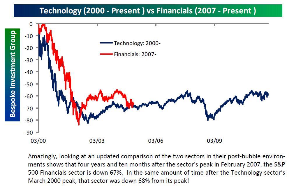 Financials; de platte pannenkoek van de jaren '10, of is het de as die voor vertekening zorgt?