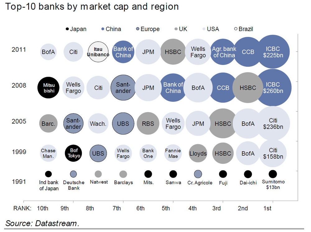 Deze geeft weer even wat perspectief over vroegere winnaars: samenstelling van de top 10 bankensector door de tijd heen