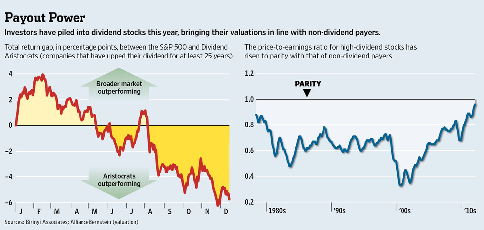 Elk voordeel heeft zijn nadeel: dividendaandelen zijn inmiddels even duur als niet-dividend aandelen…