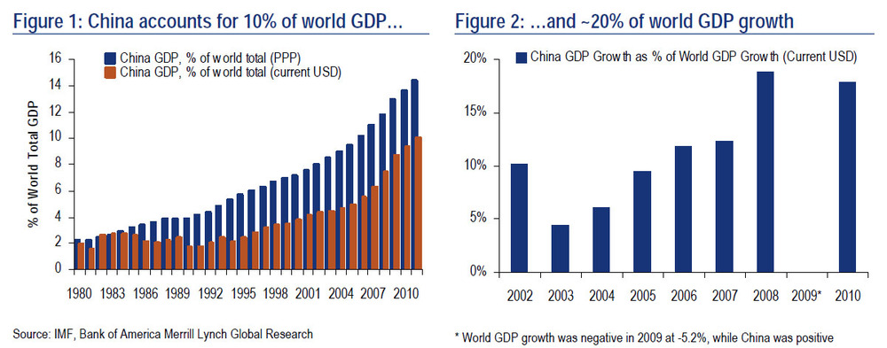 Mooie grafiek over hoe groot en belangrijk China eigenlijk is geweest. En wat er gebeurt in het geval van een harde landing