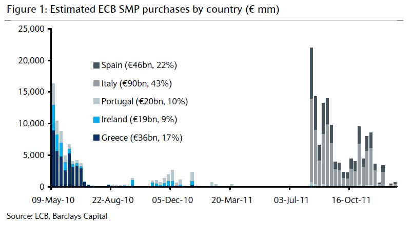 Deze is ook mooi: analisten van Barclays schatten het verlies van de ECB op de aangekochte obligaties op 30 miljard