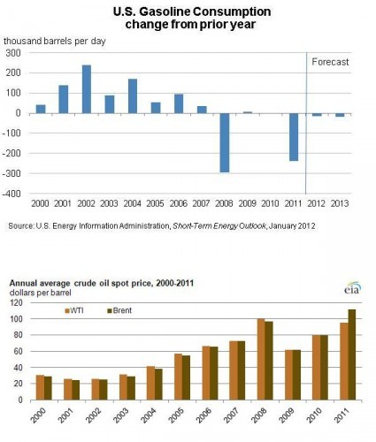 Opmerkelijke grafiek over benzineverbruik in de VS: die daling in 2011 is wel opvallend