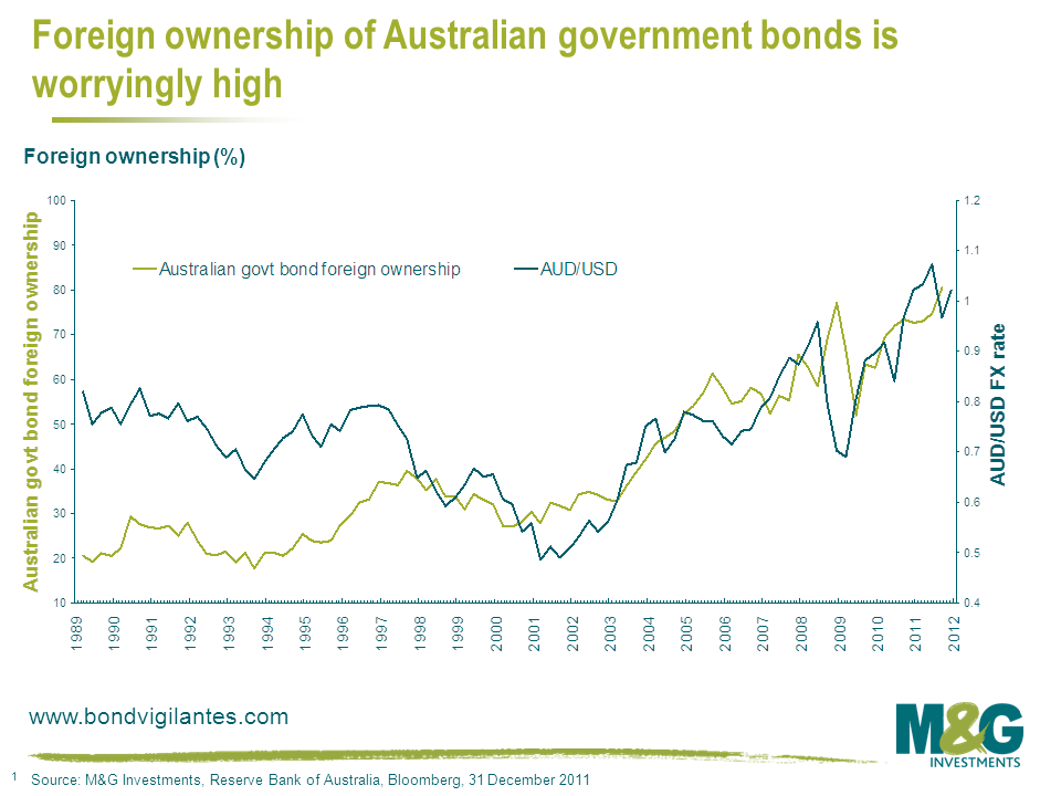 Je ziet niet zo veel grafieken over de Australische obligatiemarkt, dus deze mag niet ontbreken: buitenlandse beleggers zitten groots in Aussie bonds