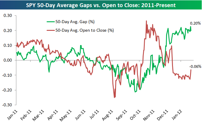 Altijd interessant: de winst van de Amerikaanse markt is de laatste 50 handelsdagen volledig buiten de handelsuren neergezet