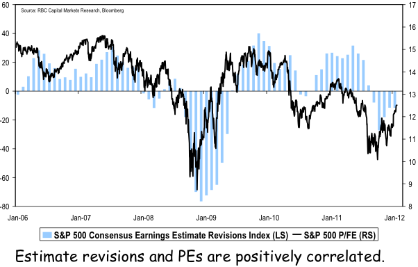 Voor de aandelenbeleggers onder u: samenhang winstherzieningen en PE ratio's