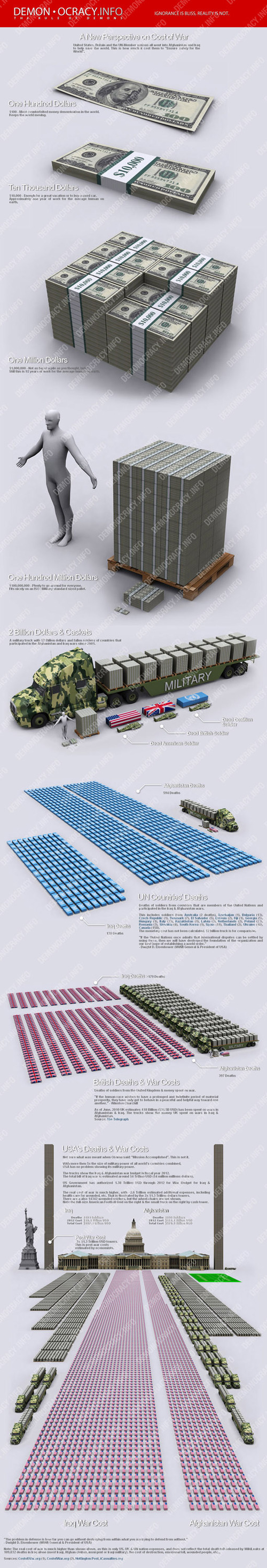 Ze blijven mooi deze visualisaties, hoewel de wet van afnemende meeropbrengsten zeker van kracht is. Kosten van oorlogen in de vorm van trucks en begraafkisten