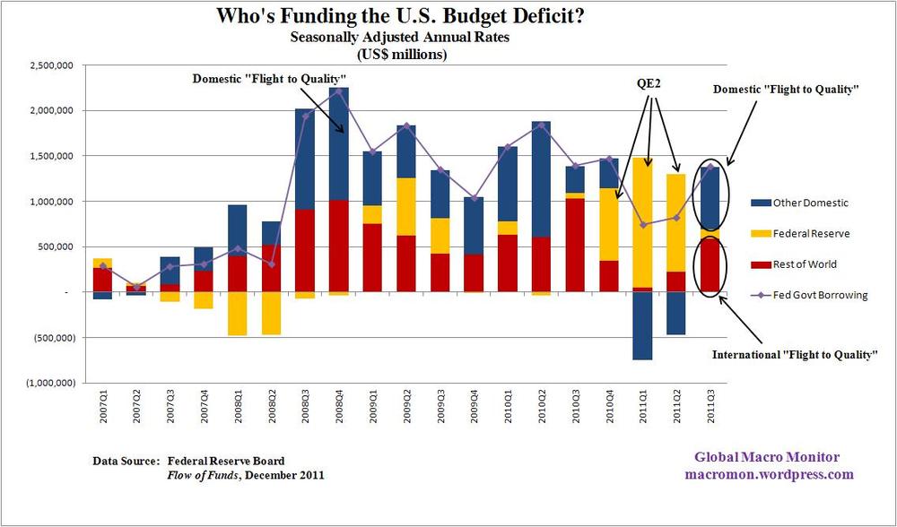 Mooie grafiek ("Who's funding the US budget deficit"), waarbij alleen die tekst bij de pijltjes wat vreemd is…