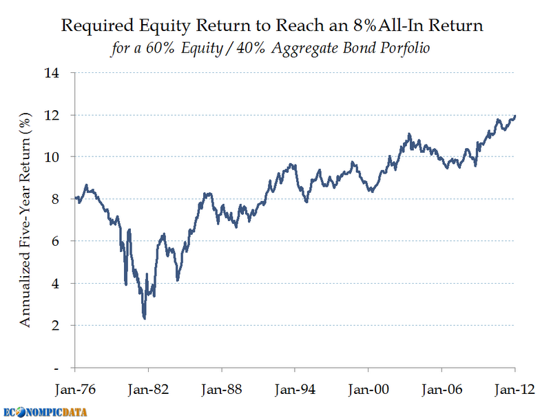 Deze is overigens ook mooi: we weten hoe laag de kapitaalmarktrente staat, dus wat moeten aandelen gaan doen om op een gemiddeld rendement van 8% uit te komen?