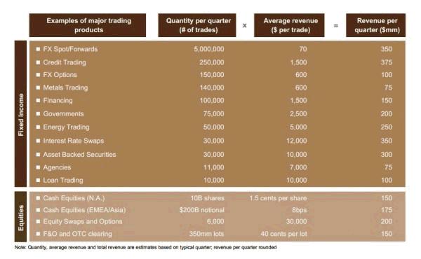 Informatief en bruin overzicht over hoe winstgevend (en groot) bepaalde transacties voor (in dit geval) JP Morgan zijn (via @rberkien)