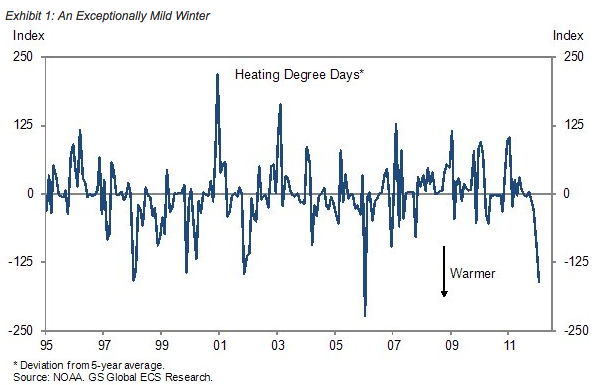 Kijk, bij Goldman hebben ze ook door dat het winterweer in de VS wel opvallend zacht is dit jaar. Wat het voor de economie betekent wordt op basis van deze bijdrage helaas niet duidelijk…