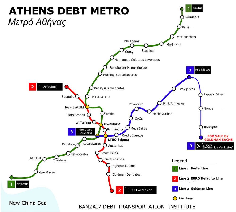 Onder het kopje (soms wat zwarte) humor: the Athens Debt Metro
